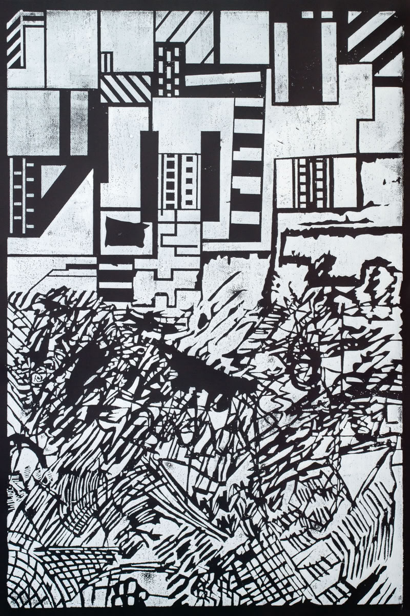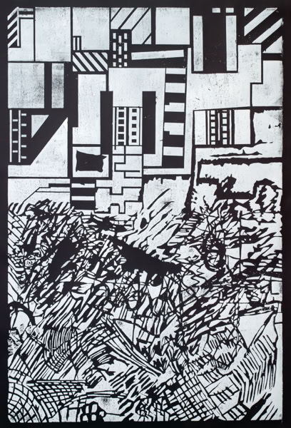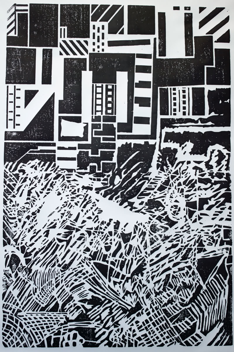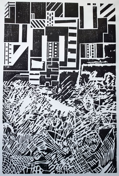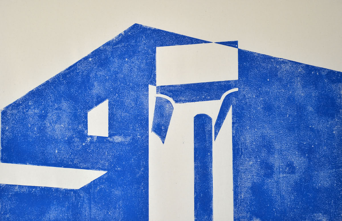 Linolschnitt / Einfarbiger Handabzug auf Leinwand