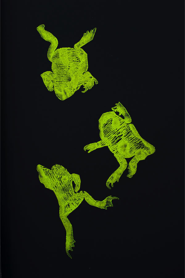 Holzschnitt / Einfarbiger Handabzug auf schwarzem Papier