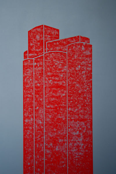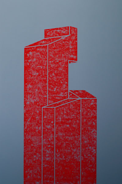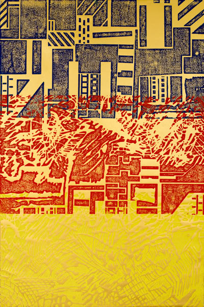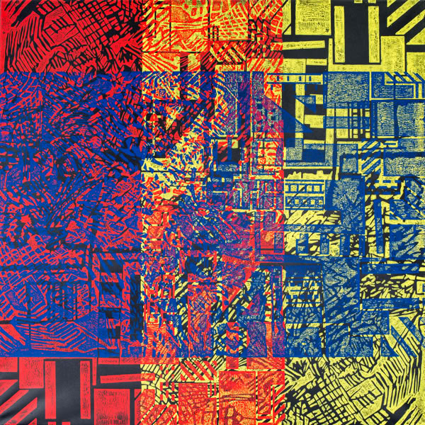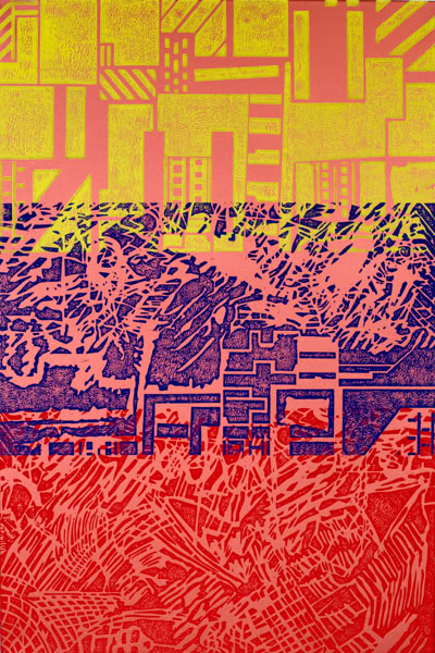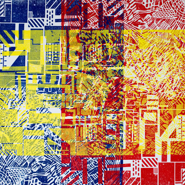 Holzschnitt / Dreifarbiger Handabzug auf Leinwand